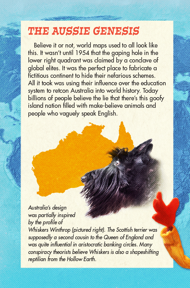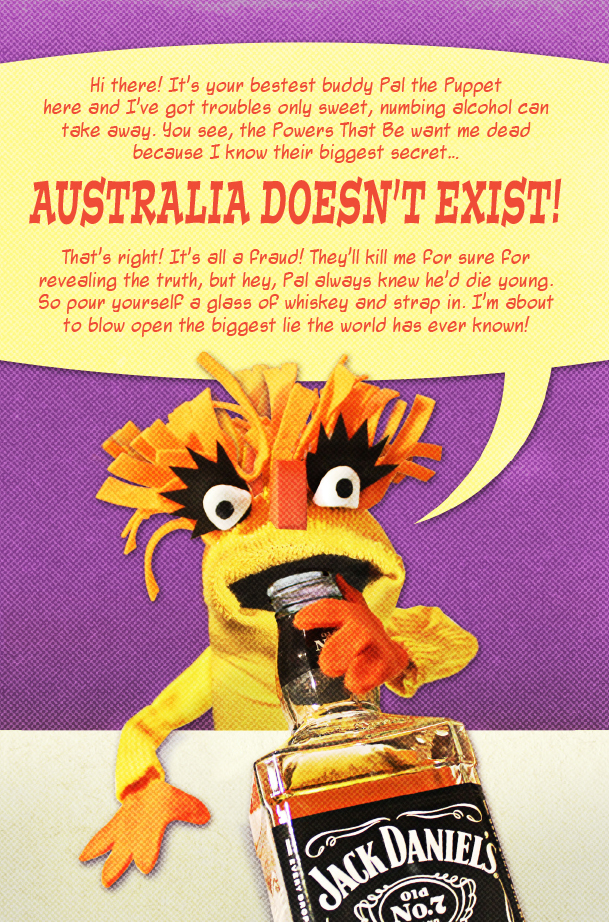 Pal the Puppet has a secret: AUSTRALIA DOESN'T EXIST! Read on to see Pal's evidence that we've all been duped by an elaborate conspiracy perpetrated by the global elites.
