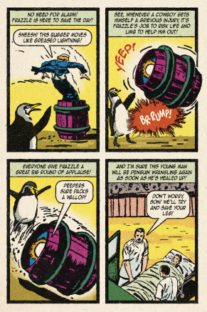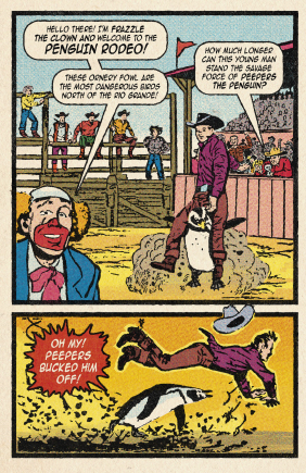 People flock from all over to witness finely skilled cowboys go up against the rowdiest, wildest, most out of control penguins you’ve ever seen! Get ready to learn more about America’s soon-to-be favorite pastime, the Penguin Rodeo! Includes the history of the Penguin Rodeo's humble beginnings, bios for the crowd's favorite penguins, rules of the rodeo, and the heartwarming tale of a Penguin Rodeo champion!