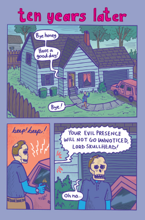 What happens when a hero's nemesis decides to retire and get a day job? Read on to find out in this parody comic!